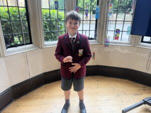 This week we celebrated Hugo from Year 3 – for always being so kind and thoughtful to everyone around him. Hugo is always willing to help, and he has often been seen being helpful ringing the bell at the end of playtimes. Hugo makes me smile with his thoughtfulness.