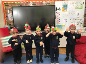 The children sang beautifully for their grandparents on Thursday afternoon – they sang ‘We are The Dinosaurs’ with Nursery. It was fantastic to watch all the children singing so well and remembering the actions and the children looked wonderful in their dinosaur headdresses.