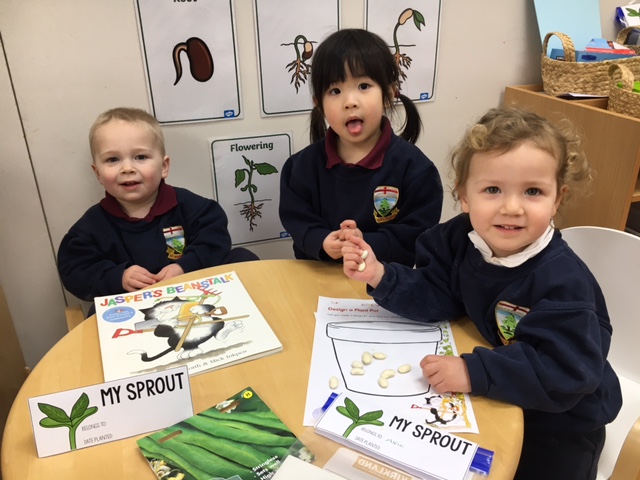 Building on last weeks story ‘Jaspers Beanstalk’ the children planted their very own beans and we talked about the importance of sunlight, water and care, helping the children to develop their understanding of the world as they begin to learn about nature, growth and how things change over time. Over the coming weeks we will continue to observe and talk about any changes, encouraging the children to notice, predict and discuss what might happen next.