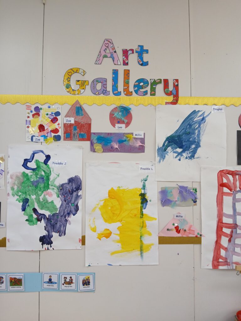 Kindy love art! They have daily opportunities to paint and create their own designs for our Gallery display. The Kindy Gallery is looking amazing and we are adding to it every day.