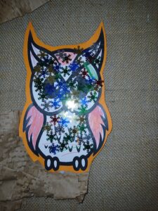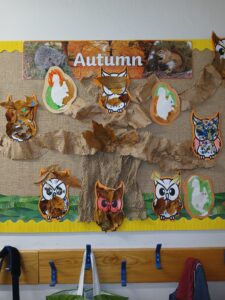 The children have also enjoyed making autumnal owls and squirrels. They stuck leaves onto the owls and every owl is different. There is even a glitter owl!