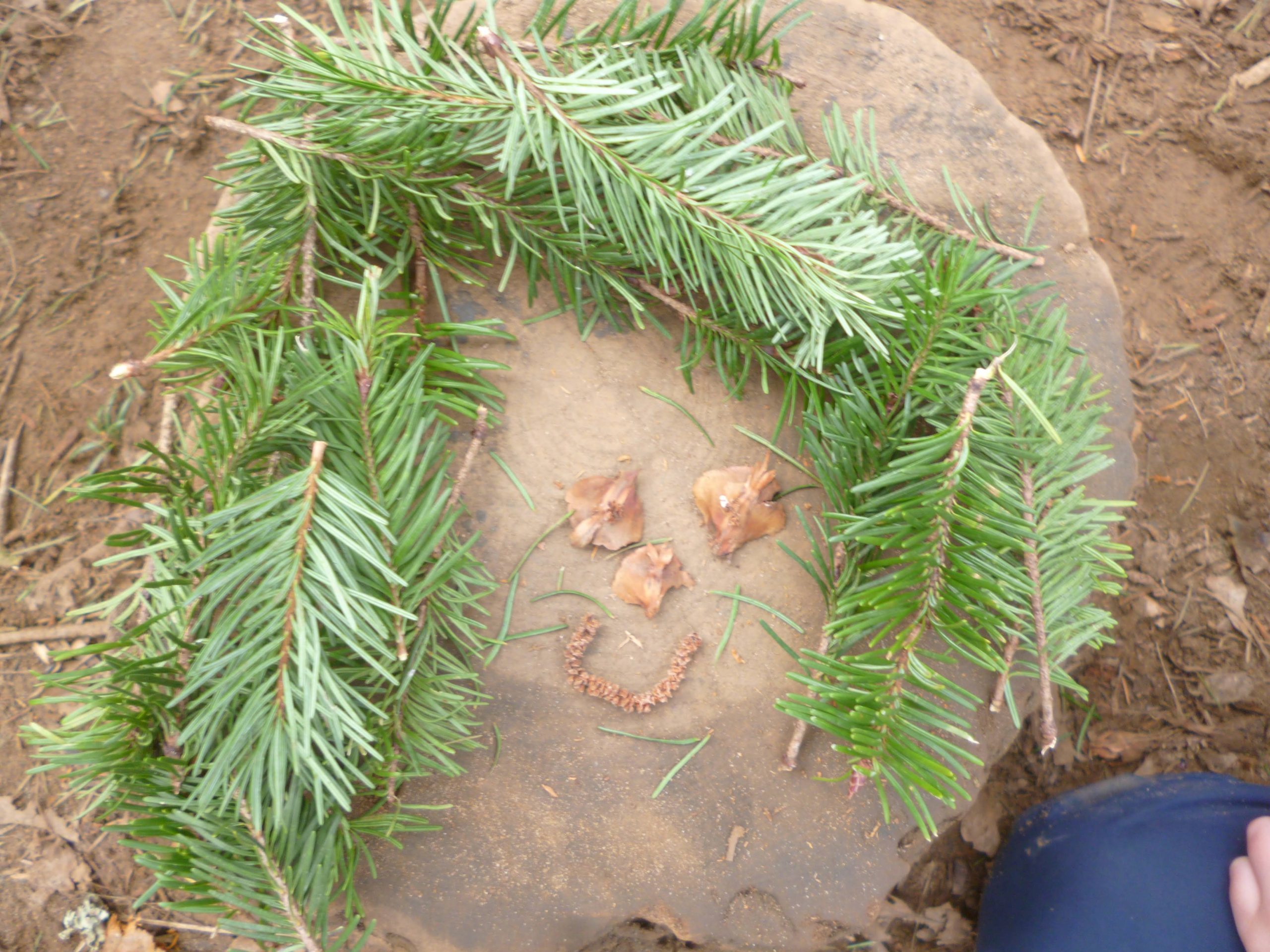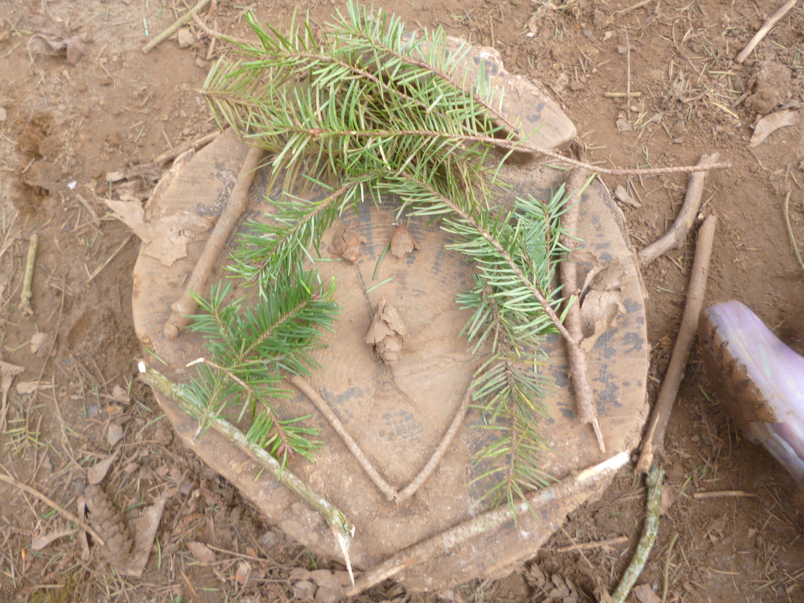 We went on to discuss all the lovely things that mum’s do for us, “Hugs”, “Kisses” and “Snacks” were the most frequently mentioned! Next, we created images of our mums’ faces using things found on the woodland floor. I particularly liked the tight curl hairstyles created with pinecones!