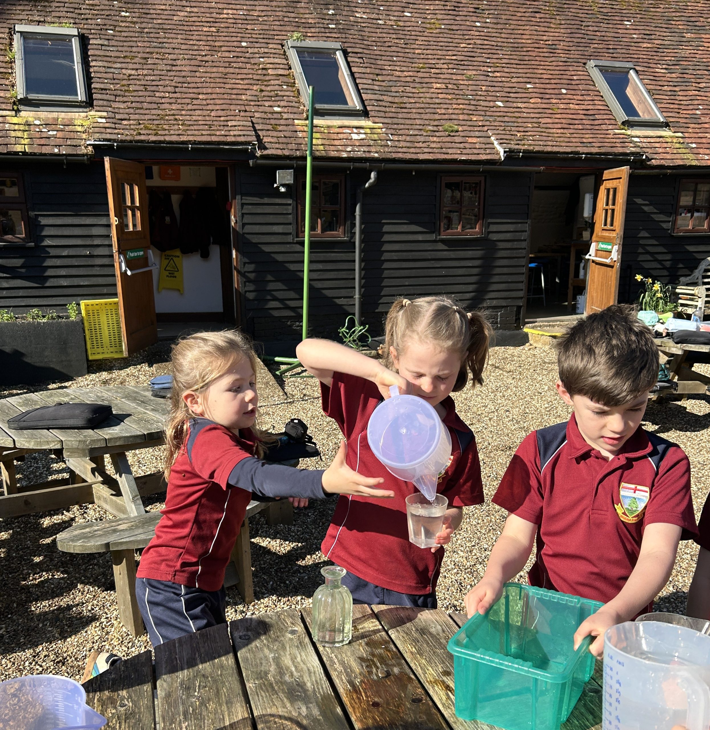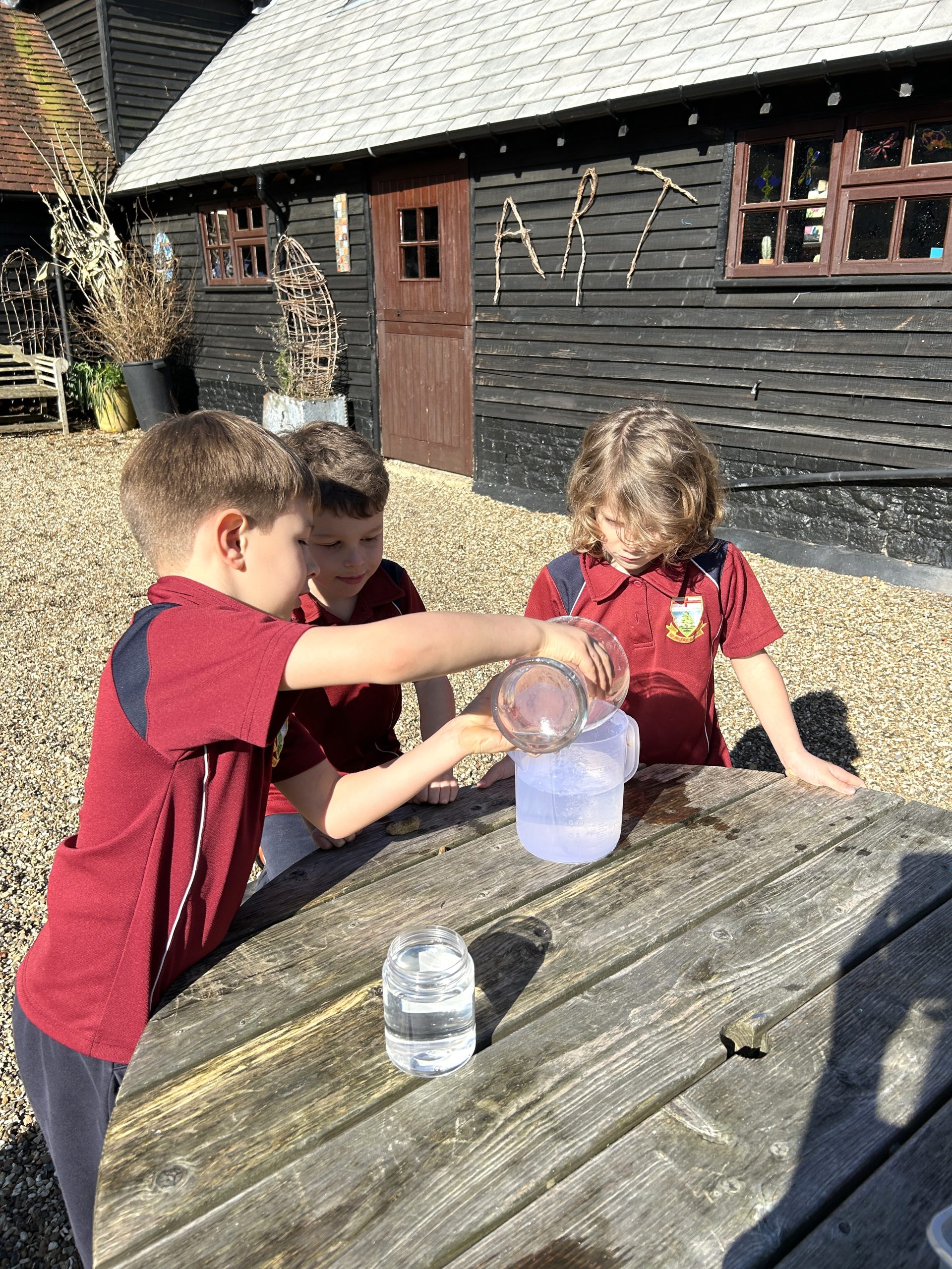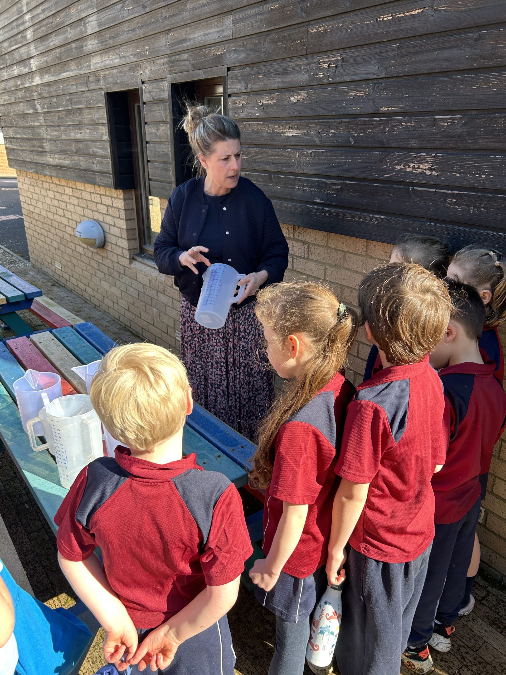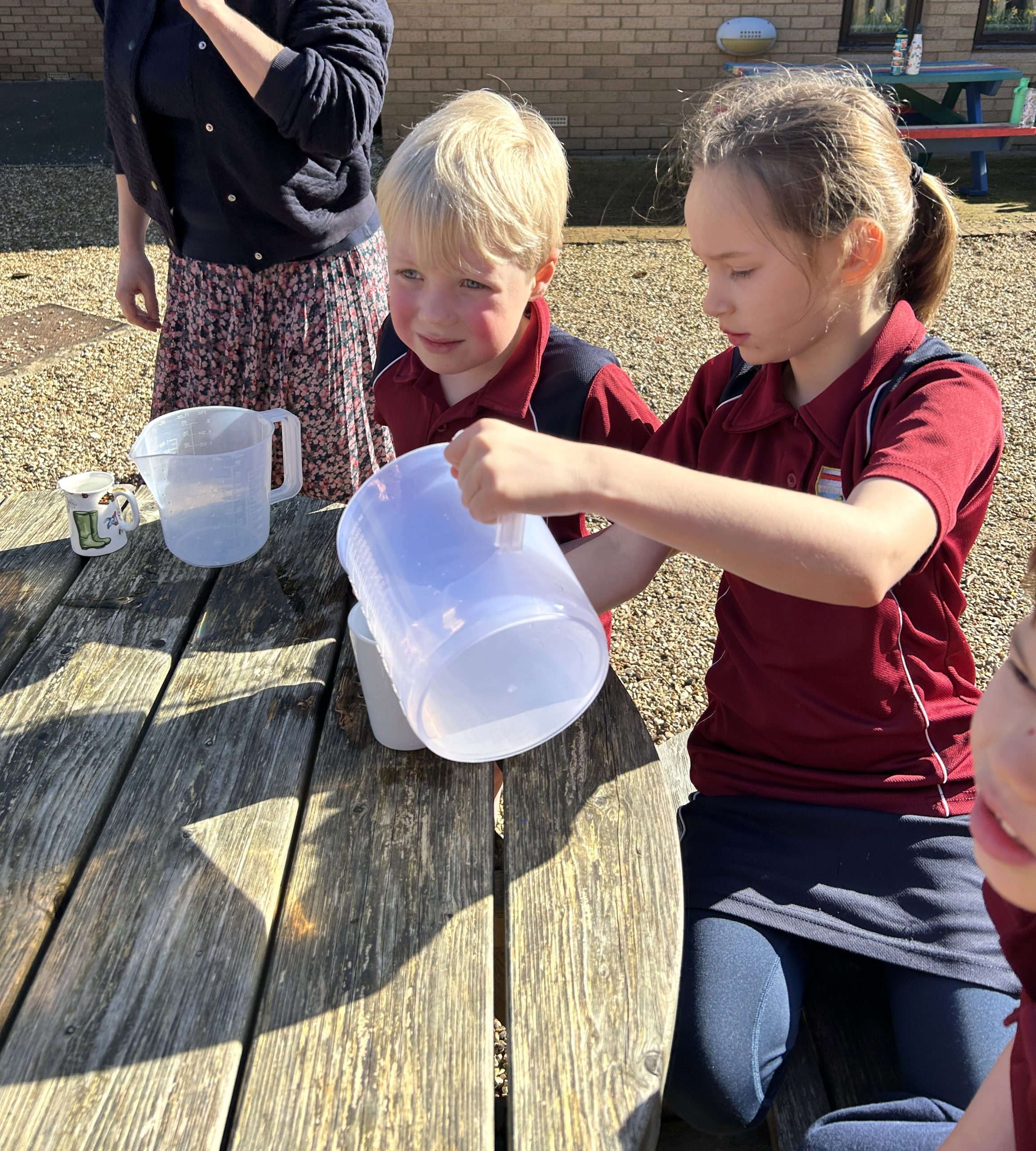 This week in maths, Year 2 explored volume and capacity with a practical lesson outside in the sunshine. They honed their skills of estimating and measuring accurately, reading scales, and carefully pouring the contents of a variety of containers. It was a great opportunity to put their learning into practice while enjoying the beautiful spring weather!
