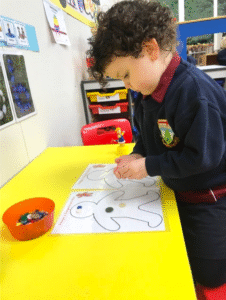 The sound of the week was ‘p’ and the children enjoyed playing ‘I spy’ in the classroom. They are now very good at recognising if the sound is bouncy or stretchy.