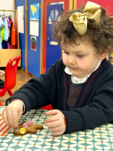 The book of the week was ‘The Gingerbread Man’. The children sang the song as they enjoyed listening to the story as well as using felt toys to act out the story.