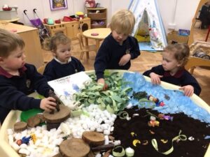 The Nursery children have thoroughly enjoyed exploring the tuff tray, which was linked to our book of the week ‘We’re Going on a Bear Hunt’. We used different materials to represent the mud, grass, water and snow. It was a wonderful sensory experience.