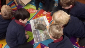 We have also been learning about animals that hibernate, why they do it and what they need to survive through the winter months. The highlight of the week was a very special hands-on visit from a real tortoise. The children were fascinated, asked thoughtful questions and had the chance to study the beautiful patterns on Joey the tortoise’s shell.