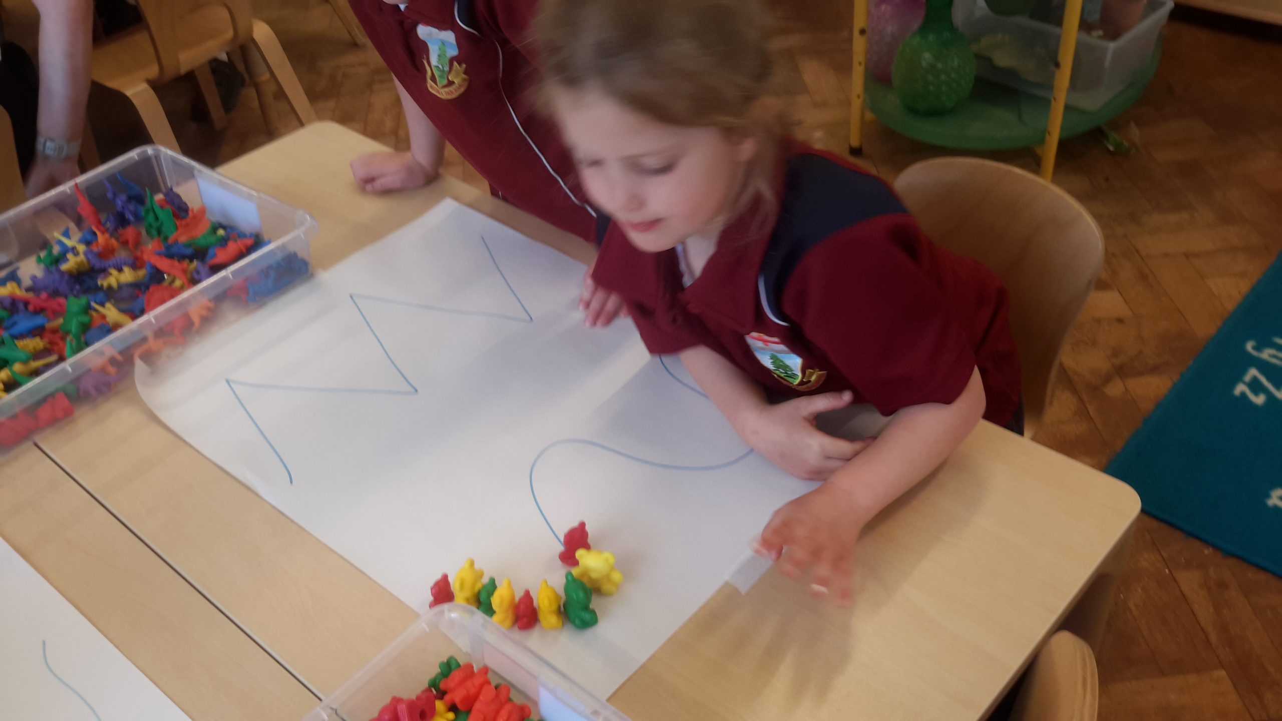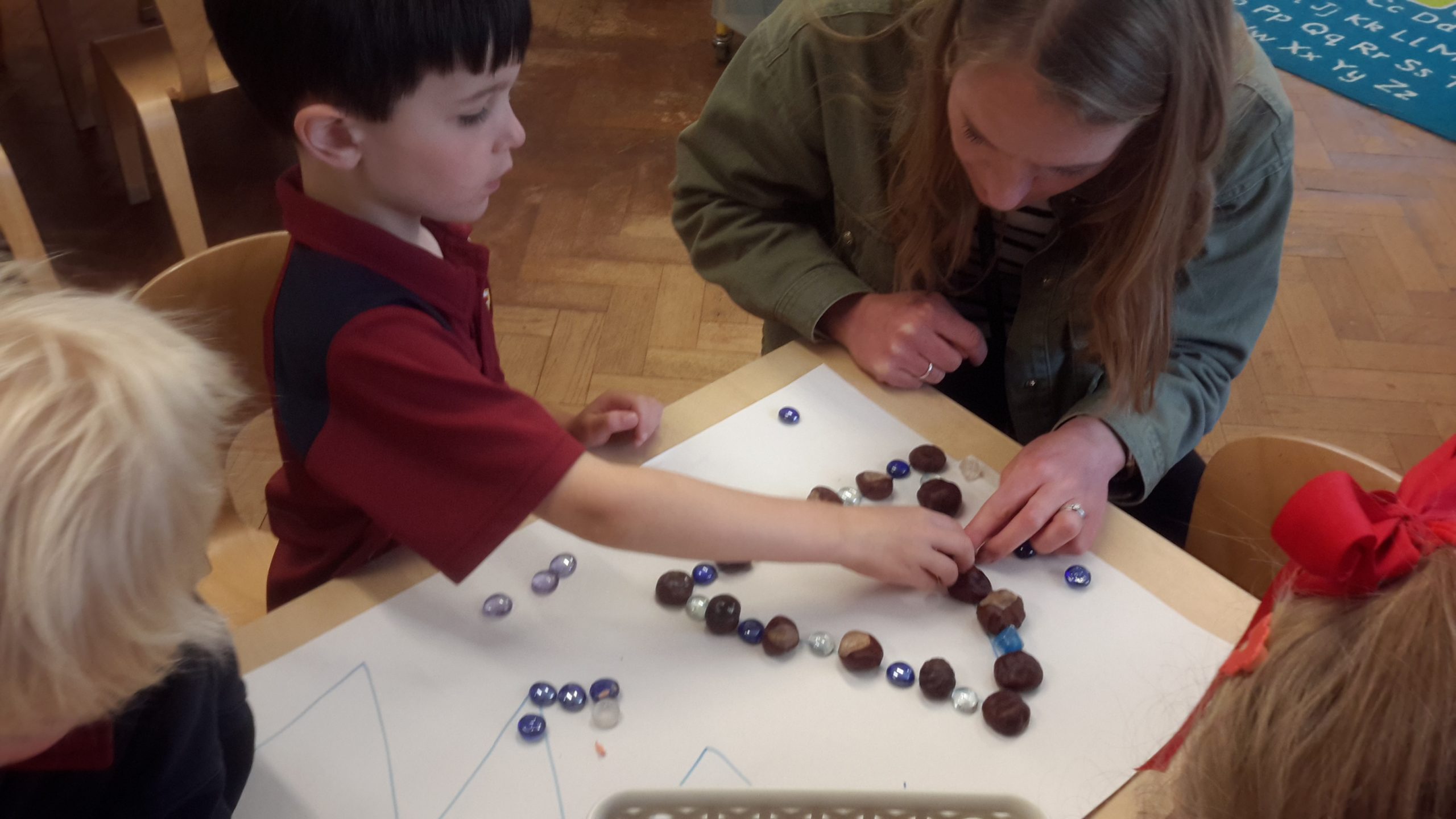 We have also been making our own patterns for our friends to continue. The children loved being the teacher and trying to trick each other with slightly more challenging patterns. It has been lovely to see them growing in confidence and having a go at creating more detailed repeating sequences.