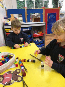 As one of their maths activities the children have enjoyed learning to measure sticks using multi link cubes.