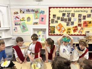 Year 2 stepped back in time on Thursday for an exciting Roman Day. The children immersed themselves in Roman life, choosing their own Roman names and dressing up in wonderful costumes.