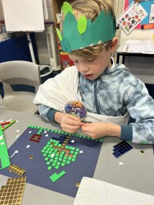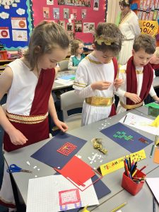 The day was packed with hands-on activities, including making delicious Roman biscuits (which were devoured by hungry Romans at breaktime), designing and beginning to paint Roman shields and learning about Roman mosaics before creating their own colourful designs. It was a fantastic day full of creativity, history, and lots of enthusiastic learning.