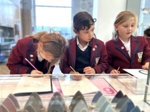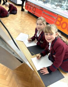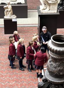 Their first stop was the Cast Courts, where they were amazed by the sheer scale of many of the exhibits, some of which formed part of the original museum collection. Pupils selected statues and sculptures to sketch, choosing either to focus on intricate details or to capture the entire piece. The children were particularly intrigued by the more anatomical sculptures – especially the famous statue of David. They were fascinated to learn that a plaster fig leaf had once been created to cover David’s modesty during Queen Victoria’s visit!