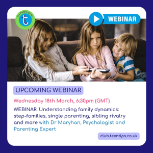 Wednesday 18th March at 6:30pm (GMT) – WEBINAR: Understanding family dynamics: step-families, single parenting, sibling rivalry and more with Dr Maryhan, Psychologist and Parenting Expert