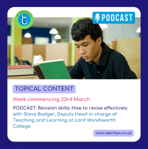 Week commencing 23rd March – Topical Content – PODCAST: Revision skills: How to revise effectively with Steve Badger, Deputy Head in charge of Teaching and Learning at Lord Wandsworth College