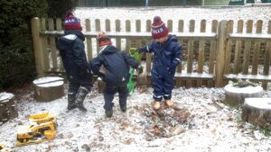 On Tuesday, the children were treated to a chilly but beautiful morning and were delighted to be outside playing in the garden with their friends, exploring the ice and snow. This led to lots of interesting discussions about ice and snow, and we talked about the freezing temperature of water, what happens to ice when the temperature goes above zero, and what happens to water when it goes below zero.