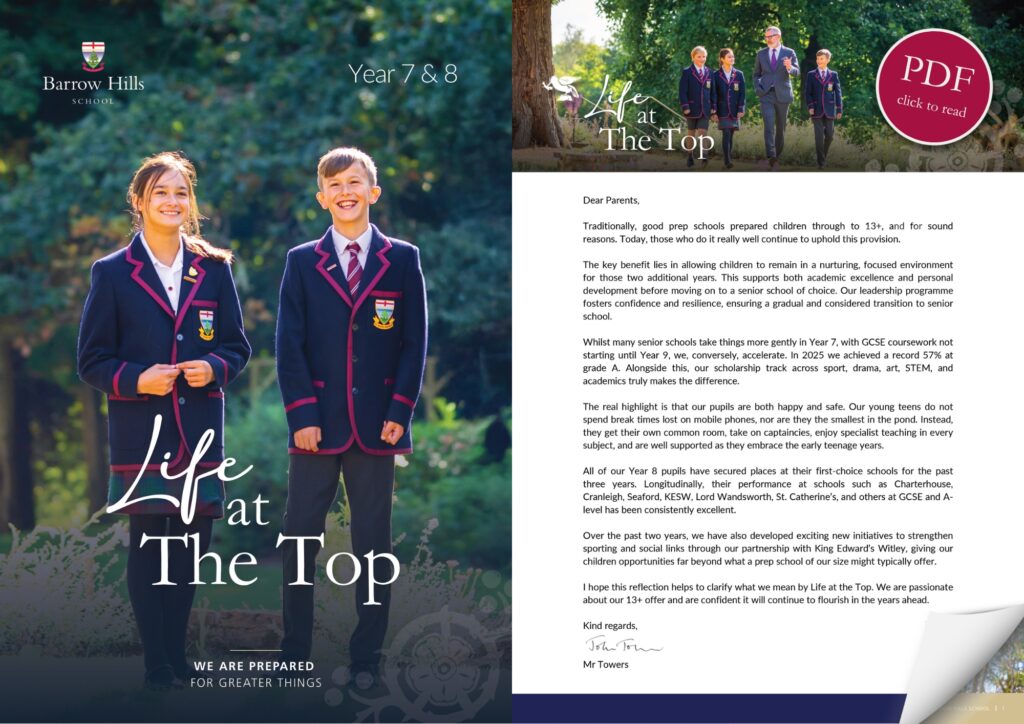A wonderfully exciting two years of growth. At Barrow Hills, children have the opportunity to be at the top of the school at an extremely formative time in their development.